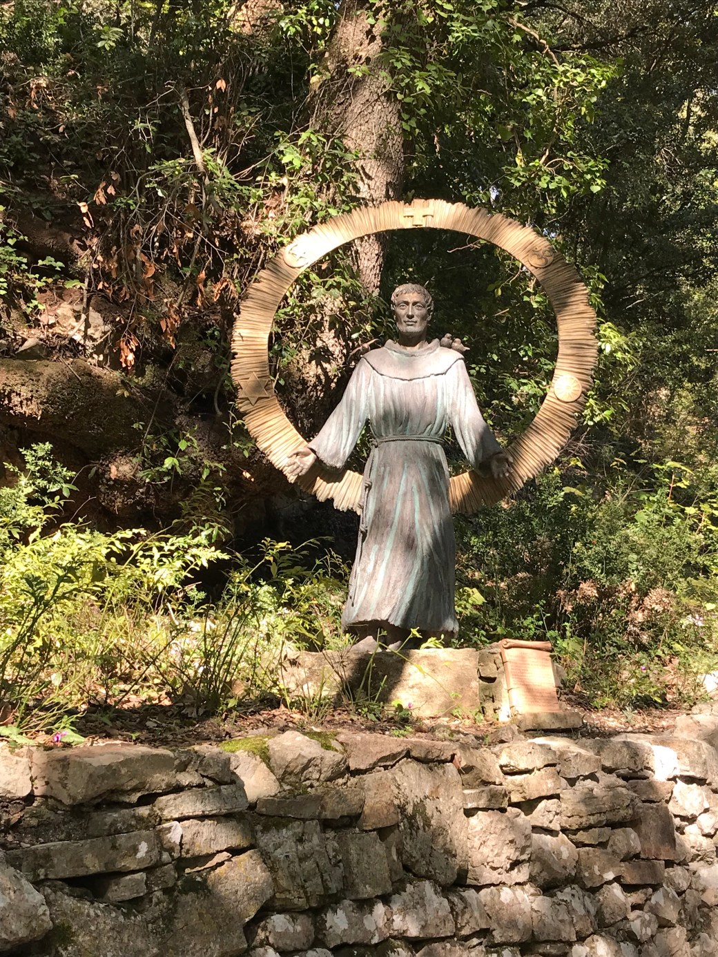 Première surprise. C’est en allant visiter la cathédrale que j’ai rencontré un ermite si je peux l’appeler ainsi. Il est apparu ce matin, montant la côte, pieds nus vêtu d’un mince habit qui date d’une époque lointaine s’appuyant sur son bâton. Il vit l’extérieur de la ville, m’a-t-il dit, isolé du monde. Il arrive en ville comme ça, pieds nus , les fins de semaine, parle aux gens, leur parle de son expérience de vie, accepte un peu d’argent des passants. Ne veut pas se faire photographier. Sauf que, il a fait les manchettes lorsqu’il est parti d’Assise vers Rome à pied, confronté à des épisodes de pluie et de neige. C’est clairement un visiteur d’une autre époque.