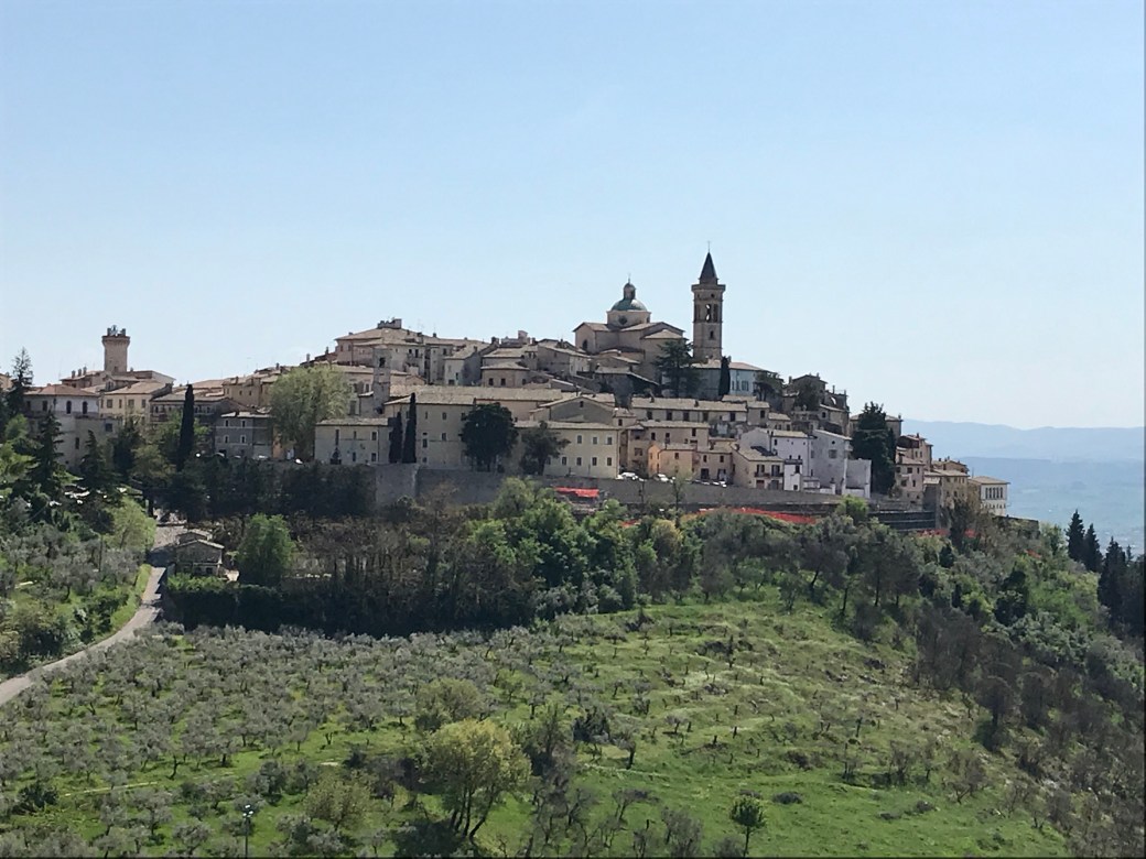 J’ai rencontré deux jeunes Californiens qui eux, ont commencé à marcher hier. Nous nous sommes croisés, échangés quelques mots et avons poursuivi chacun notre route comme c’est souvent le cas. Ils se rendent à Rome et j’aurai peut-être l’occasion de les revoir. Trevi, ma destination, est une petite vieille ville de 8,000h. Les gens sympathiques et offrent de l’aide s’ils sentent que l’on cherche des balises.