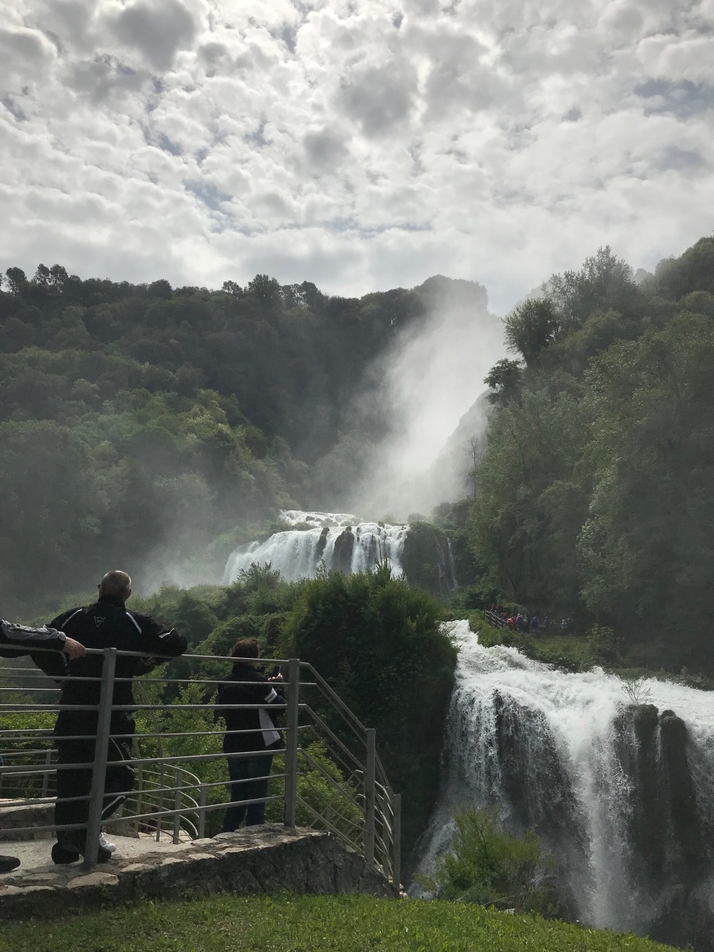 Départ d’Arrone vers 8h30 en espérant arriver vers 10h pour visiter la chute Cascata delle Marmore située à environ 6kms d’Arrone. Des chutes, chef d’œuvre d’ingénierie qui datent de l’époque romaine. Une suite de beaux paysages variés parsemés en cours de route . La Cascata Delle Marmore, impressionnante chute de165 mètres, et a été construite en 271A.C. Au départ, l’intention était de dévier l’eau de la rivière Velino vers celle de Marmore afin d’assécher les marais. Les ingénieurs n’avaient pas réalisé que cette déviation occasionnerait d’autres problèmes d’inondation ailleurs. Le tout s’est réglé bien plus tard. Depuis le 19e siècle on se sert de cette eau pour alimenter les turbines et produire de l’électricité. Spectacle visuel sans égal, lorsque les turbines sont ouvertes, La Cascate Delle Marmore, attire les touristes de partout dans le monde . Montées dures mais quelle vue!