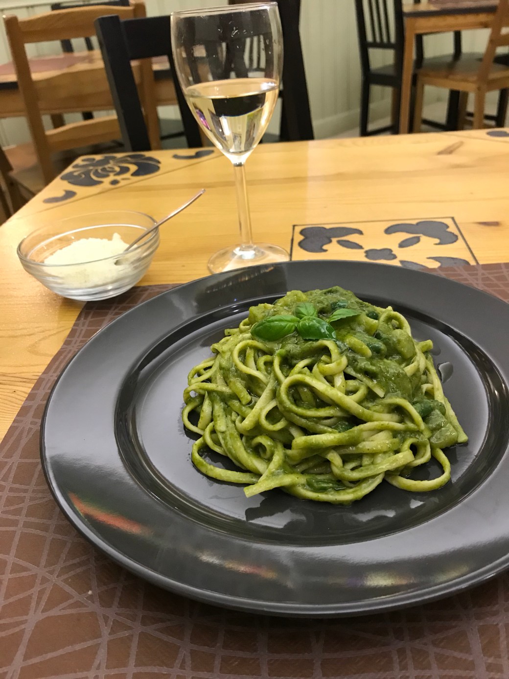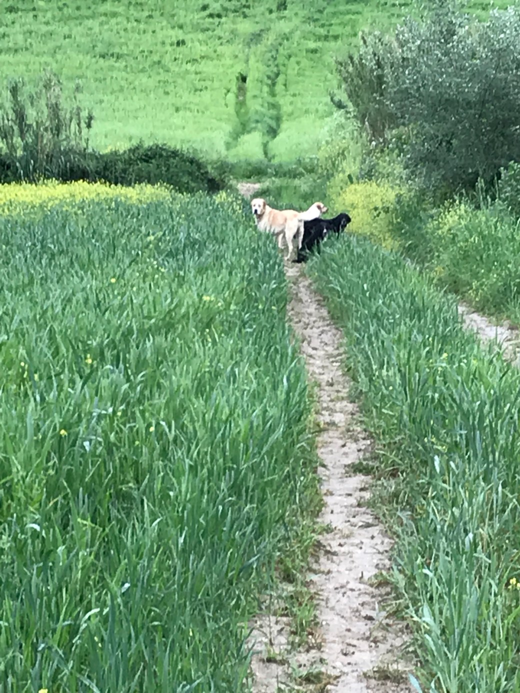 Journée de marche sans difficultés. Suis partie à 8h30 ce matin et à 14h j’étais déjà arrivée. J’ai emprunté diverses surfaces de marche comme un sentier de terre dans un champ, traversé un Parc National et affronté la circulation automobile à mon arrivée dans banlieue de Rome facilitée grâce aux données précises de mon guide. Beaucoup de boue dans les cinq premiers kms dans un sentier emprunté par les tracteurs pour me rendre aux champs. Bref, au milieu de nulle part! Rencontre de plusieurs chiens qui gardent les troupeaux de brebis de façon très sérieuse. Je dirais au moins une dizaine. J’ai reçu la visite d’un groupe de quatre d’entre eux qui m’apparaissaient menaçants et de fait m’ont gentiment escortée à distance des moutons sous leur garde. Arrivée à destination, mon gîte est situé sur le tracé officiel du Chemin. Facile demain de partir pour la dernière étape de mon aventure. Je suis hébergée dans une grande chambre qui ressemble davantage à un appartement avec un coin bureau et salle de bain. Le tout est très propre. Je me dois de mentionner les pâtes au pesto d’asperge. A se rouler par terre!