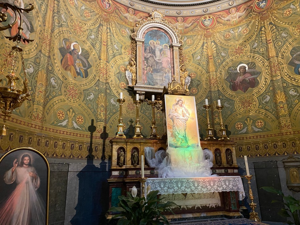 Attirée par la façade du bâtiment de cette église consacrée 1905 dont l’extérieur est richement décorée de mosaïques sur sa façade. L’intérieur compte 14 chapelles dédiées aux nations catholiques qui ont largement contribué à sa construction.
