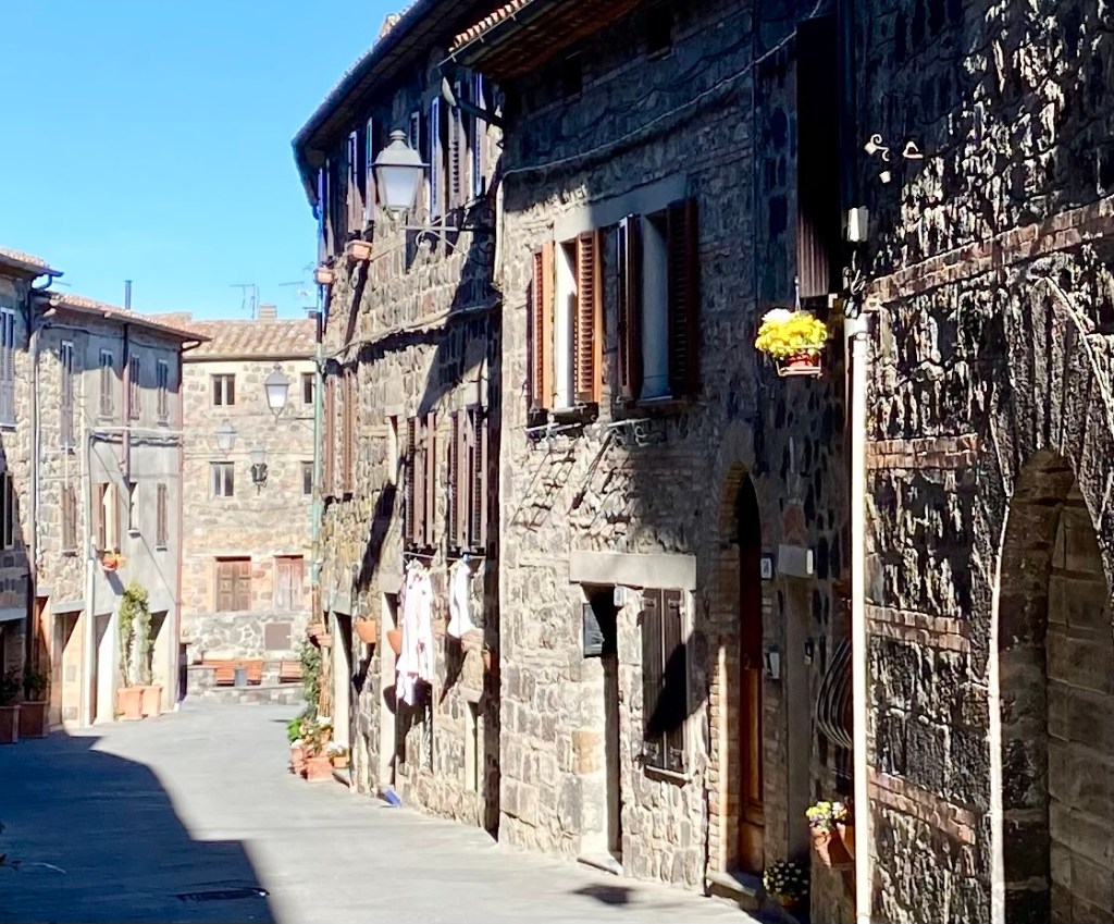 J’ai apprécié l’accueil chaleureux reçu à LaVecchia Posta, hébergement situé sur la Via Cassia. Ce vieux bureau de poste appartient la même famille depuis la fin du19e siècle. Un bâtiment témoin d’événements tragiques et historiques qui s’est transformé au fil des années en école, bar et bureau de poste après la guerre jusqu’au début des années 70. La partie droite a été détruite durant la DGM et reconstruite sur les décombres de ce qui avait été un commerce. Le récit de Doris Origo dans Guerre dans le Val d’Orcia : un journal de guerre en Italie, 1943-1944 décrit les ravages de la guerre dans cette région.